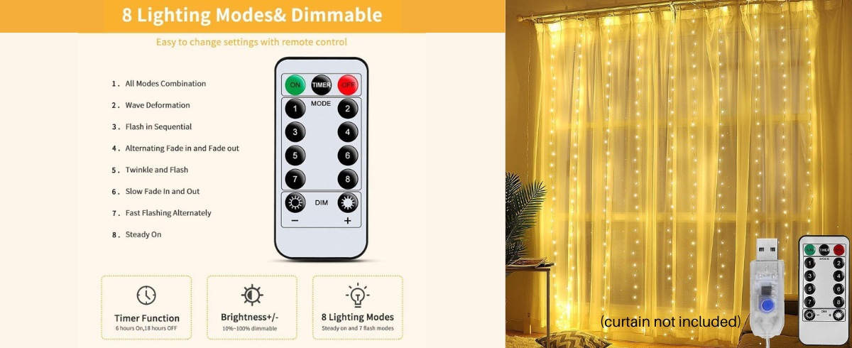 Stylish & Reliable Decor: This 10x10 ft curtain string light adds a trendy and romantic touch to any room or event.